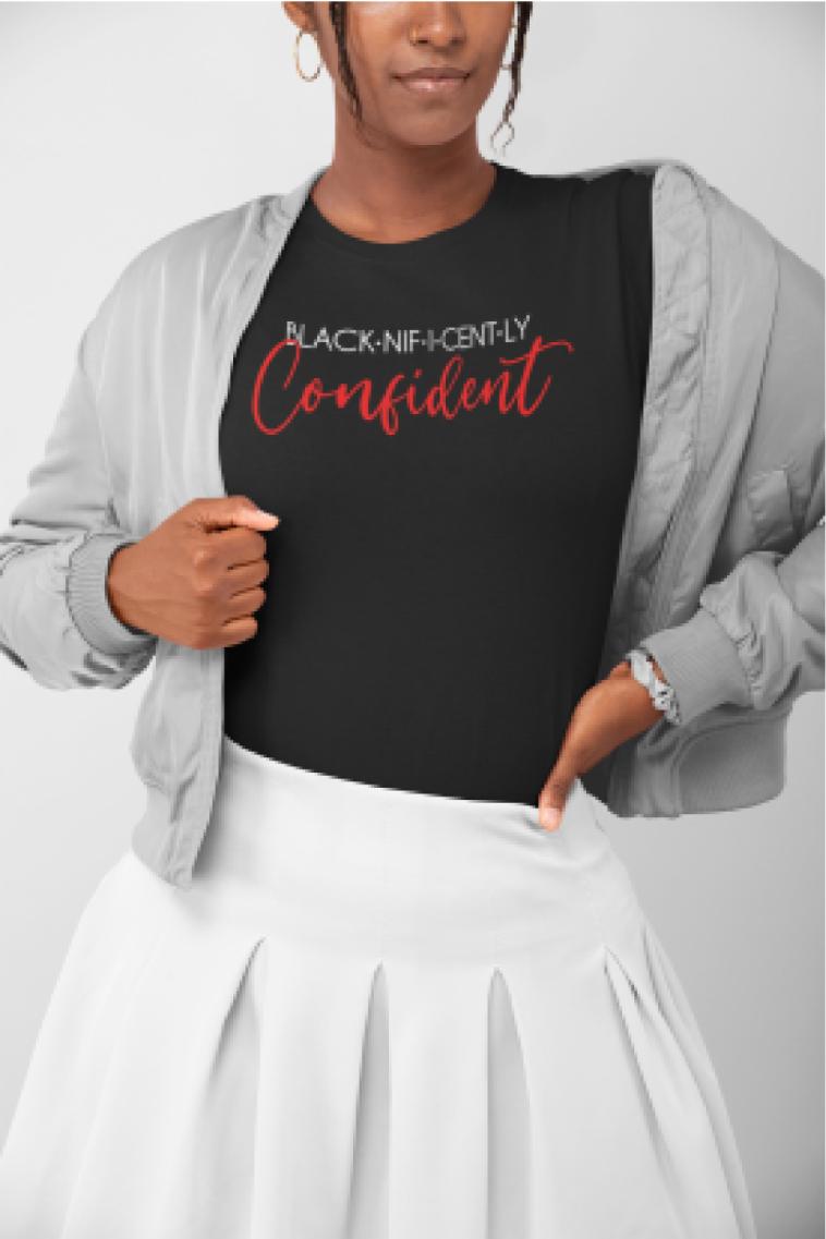 Black-nif-i-cent-ly Confident - Black short sleeve t-shirt