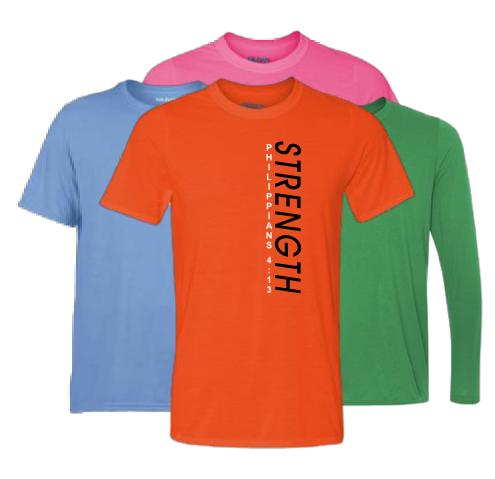 5.0 oz., 100% Polyester. Active Fit. Wicking Properties. Short Sleeve or Long Sleeve Tee